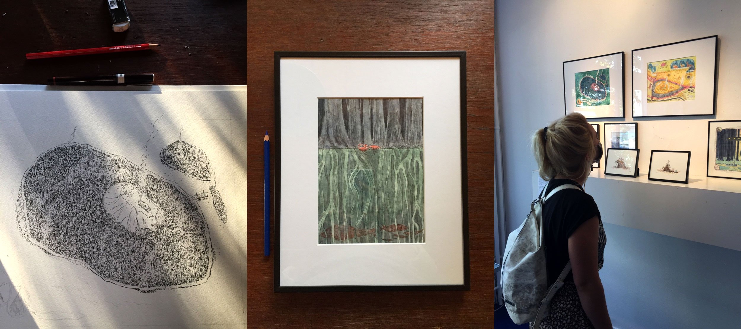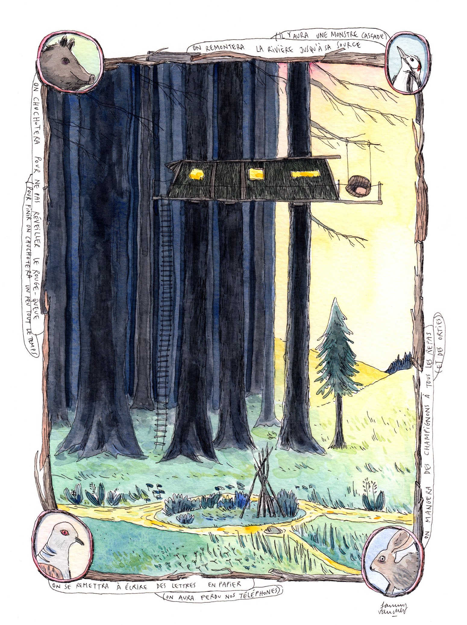 Exposition d'une série d'illustrations inédites à la galerie Tiramisu à Genève, en septembre 2020. Ces créations, dont voici quelques unes, ont pour thème mon rapport à la forêt, omniprésente dans mon quotidien depuis une année.