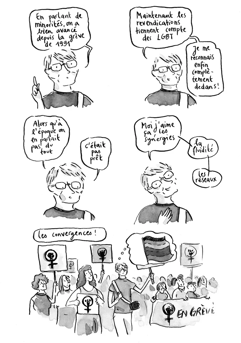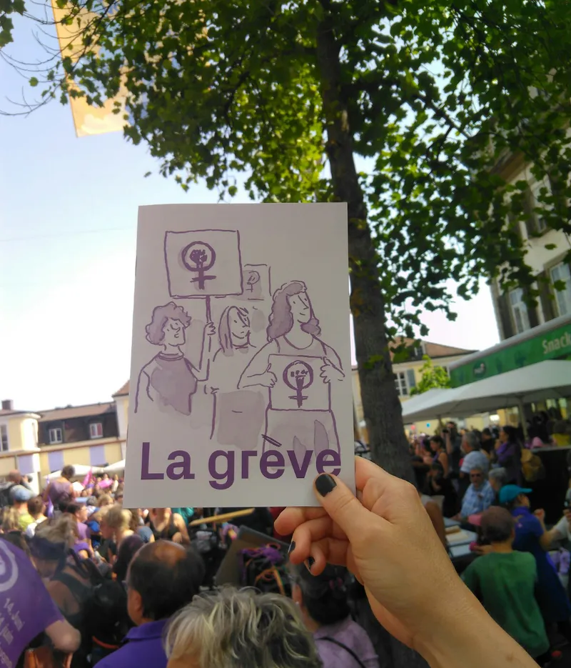 À la veille de la grève des femmes du 14 juin 2019 en Suisse, huit créatrices du collectif La bûche ont enquêté sur la perception du mouvement par les Delémontain-e-s. Sur invitation du festival Delémont’BD, et accompagnées par l’invitée d’honneur du festival, Lisa Mandel. Réalisé en un temps record sur la journée du 13 juin, ce fanzine est le résultat de ces rencontres. Il a été distribué aux grévistes, puis vendu durant le festival. Une initiative de Delémont’BD 2019 et La bûche, avec le soutien de la Ville de Delémont et de Pro Helvetia. J'en ai assuré la coordination avec Léandre Ackermann. La couverture figure un extrait de mes planches. Plus d'infos sur le site de La bûche.